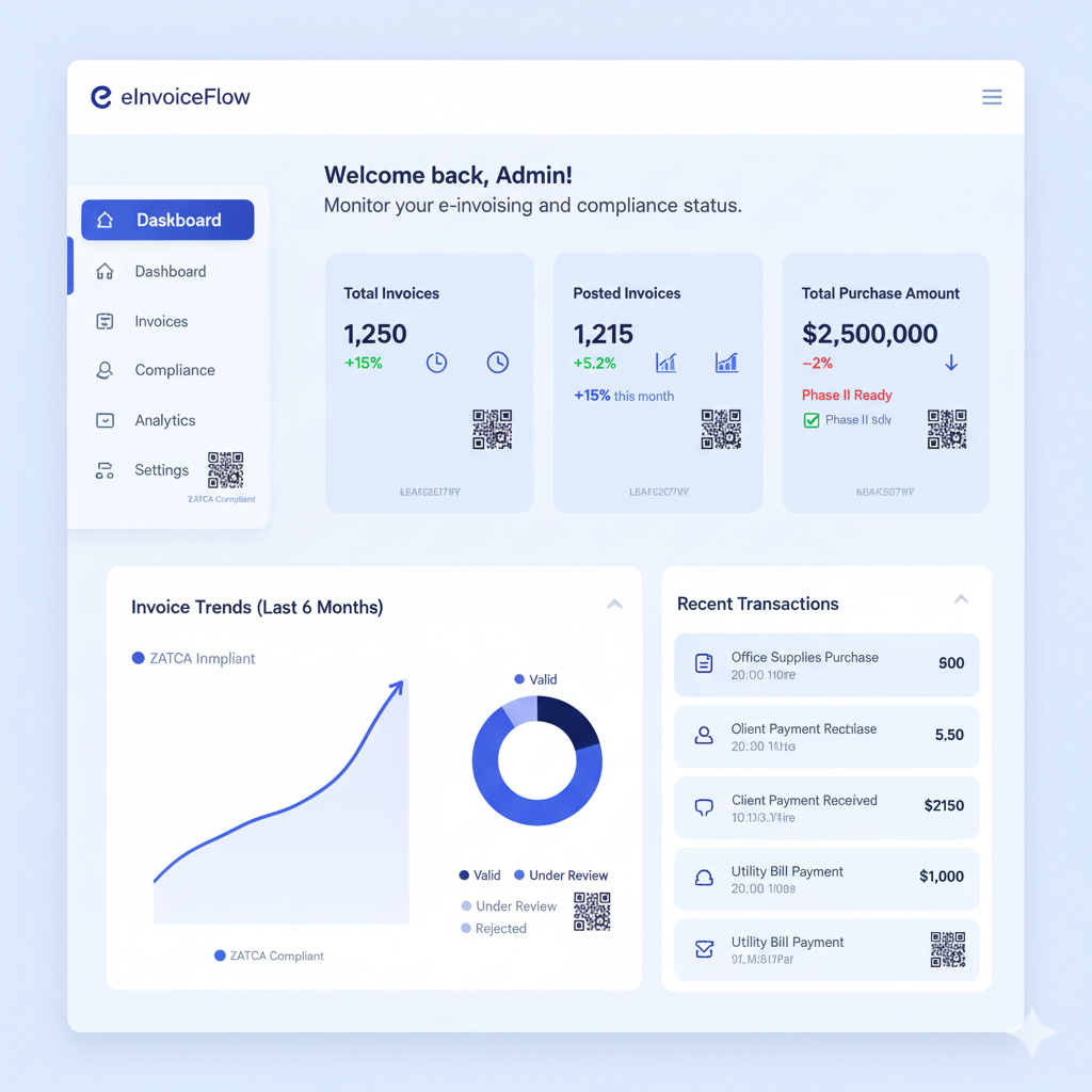 Built for ZATCA Phase 2 compliance — and scalable for regulations in other regions